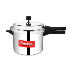 BASE: Prestige Popular comes with an Aluminium base which is thick and machine pressed. The slight concave bottom ensures shape is retained for longer.;BODY: Prestige Popular is an outer lid pressure cooker made from virgin aluminium which is light in weight and long lasting. The outer lid feature is suitable for both separator cooking and direct vessel cooking.