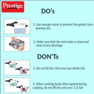 PRECISION WEIGHT VALVE: It is the first level of safety feature to release pressure above 1kg/cm2, which makes the cooking safe and time saving for you. It is made up of brass with steel coating on it for durability;GASKET RELEASE SYSTEM: This is the 2nd level of safety provide in Prestige pressure cooker, in case there is any blockage of vent tube, gasket will bulge and steam will release through the slot. Thus making it extremely safe for usage.