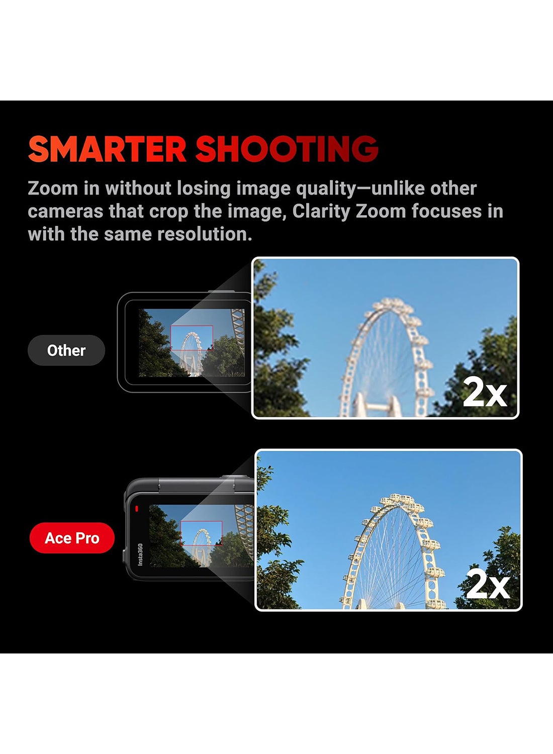 - Easy Shooting and Sharing: Effortlessly mount Ace Pro and seamlessly switch between accessories with the magnetic mounting system. Ace Pro also supports easy-to-use features such as Pause Recording, Gesture Control, Clarity Zoom and more. The built-in AI automatically generates Highlights for you, pushing a ready-to-share video to you via the Insta360 app