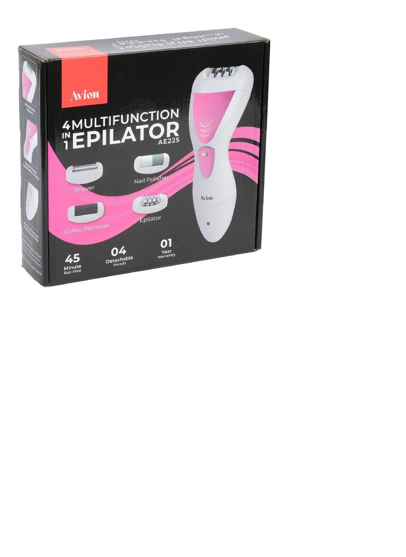 Avion 4 in 1 Multifunction ElectricEpilator Set, with ladyepilator, lady shaver, nail polisher, and callus remover, | Cordless& Rechargeable | Washable design IPX5 |USB Charging |AE225