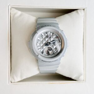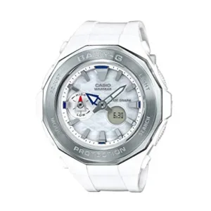 The Casio Baby-G BGA-195-8ADR is a stylish and durable women’s watch that perfectly blends fashion with functionality. Part of the popular “Striking Studs” series, this model features a sleek silver resin case and band accented with stud-inspired details on the dial, giving it a trendy and elegant look. Designed for the active woman, it offers a dual analog-digital display with features including world time across 31 time zones, a stopwatch, countdown timer, and five daily alarms. The watch is shock resistant and water resistant up to 100 meters, making it suitable for sports, travel, and everyday wear. Additional conveniences like the hand-shift function, which moves the analog hands away to reveal the digital display, and an LED backlight ensure ease of use in all conditions. Lightweight and comfortable, the BGA-195-8ADR combines robust performance with a fashionable design to complement any lifestyle.