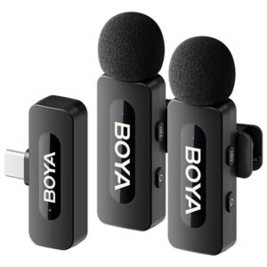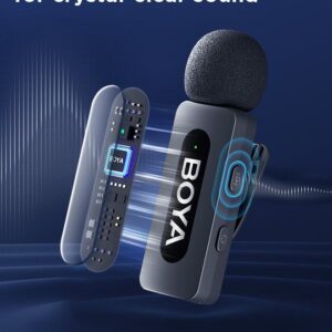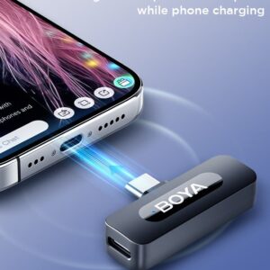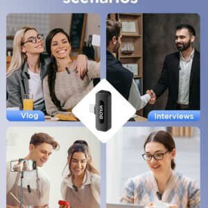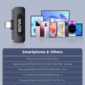 - Clip-on Wireless Lapel Microphone: BY-V20 mini wireless lavalier microphone kit has 1 MFi Certified Type-C interface receiver and 2 transmitter. The small wireless lapel mic is compatible with Android iPhone15/16 and iPod devices.