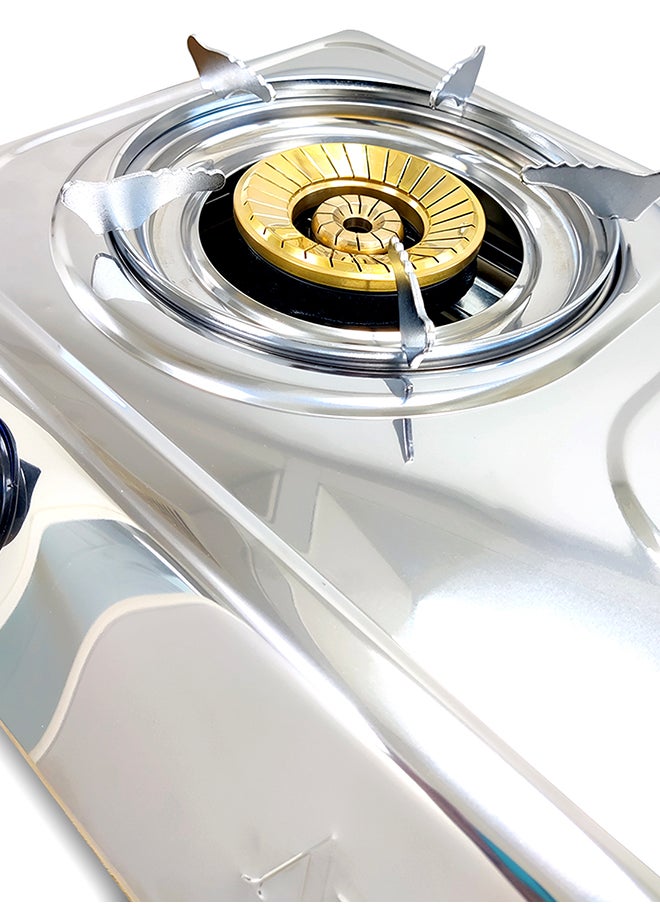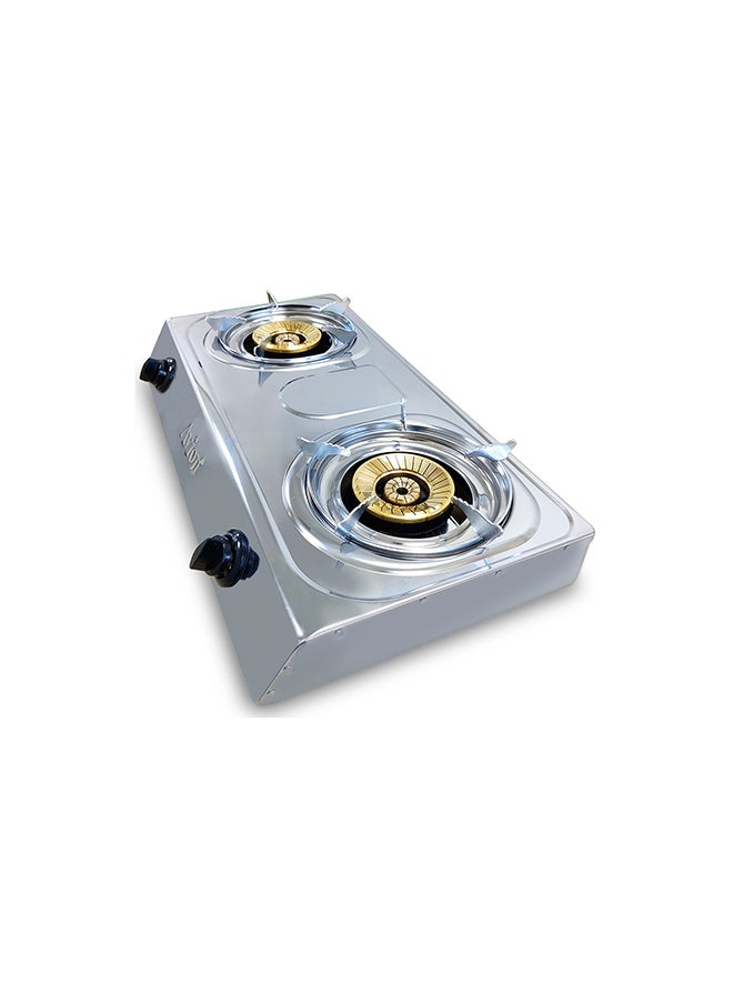 Double Burner Gas Stove Durable Brass Burner Cap Auto Ignition – Energy Efficient Burners Stainless Steel Body Heat Resistant Electroplate Pan Support Low Gas Consumption AGS28BB
