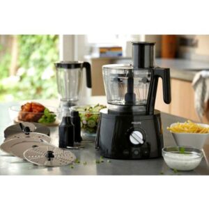 Material Combination: Plastic, Stainless Steel; Blender Jar Size: 2.2 L, Blender And Grinder Motor Speed: 20000 rpm, Bowl Motor Speed: 1700 rpm, Voltage: 220-240V, Frequency: 50–60 Hz, Cord Length: 1m, Set Includes: Food Processor, Adjustable Slicing Disc, Citrus Press, Double Balloon Beater, Metal Kneading Hook, Spatula, Stainless Steel S-Blade, Blender Jar, Reversible Disc