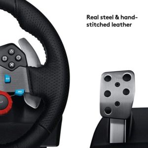 Experience the Driving Force Racing Wheel by Logitech G and take the latest racing games titles to the next level. This steering wheel is engineered to perfect your immersive racing simulation, allowing to feel every detail and bring your experience to life. Feel your tyres on every turn and type of terrain and sense when you’re under and oversteer drifting with precision, this powerful dual-motor force feedback racing wheel realistically simulates force effects so you can respond immediately and accurately. All your controls are where you can reach them on this gaming racing wheel. The D-Pad, buttons and paddle shifters are incorporated into the racing wheel, and LED indicator lights positioned just above the centre of the wheel tell you exactly when to up- or down-shift so you maintain maximum acceleration without taking your eyes off the track. With exceptionally smooth and quiet steering with 900-degree rotation, stainless steel paddle shifters and pedals, and hand-stitched leather handles, this racing wheel provides premium gaming that feels realistic and comfortable – perfect for those marathon gaming sessions. The nonlinear pedals are pressure-sensitive, mimicking the performance of a pressure-sensitive brake system for a more responsive, accurate braking feel. The base has rubber feet, perfect for hard surfaces and a patented retractable carpet grip system help your pedals stay right where you put them. Why not maximise your racing simulation experience with the additional Driving Force Shifter from Logitech G to for added realism?
