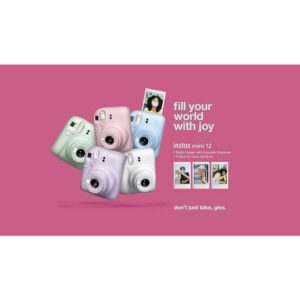 Dedicated to the joy of living in the moment, the FUJIFILM INSTAX MINI 12 Instant Film Camera provides easy-to-use controls and quickly produces memorable credit-card-sized photos. Offered here in clay white, this instant camera is ready to go with a simple twist of the lens.