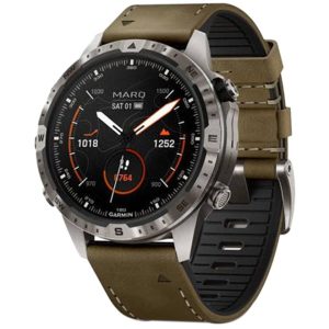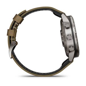 Built to make a statement, this luxury modern tool watch features a leather and FKM rubber hybrid strap, stunning AMOLED touchscreen display with traditional button controls and a 46 mm case made of Grade-5 titanium for an ultradurable design. - BATTERY LIFE