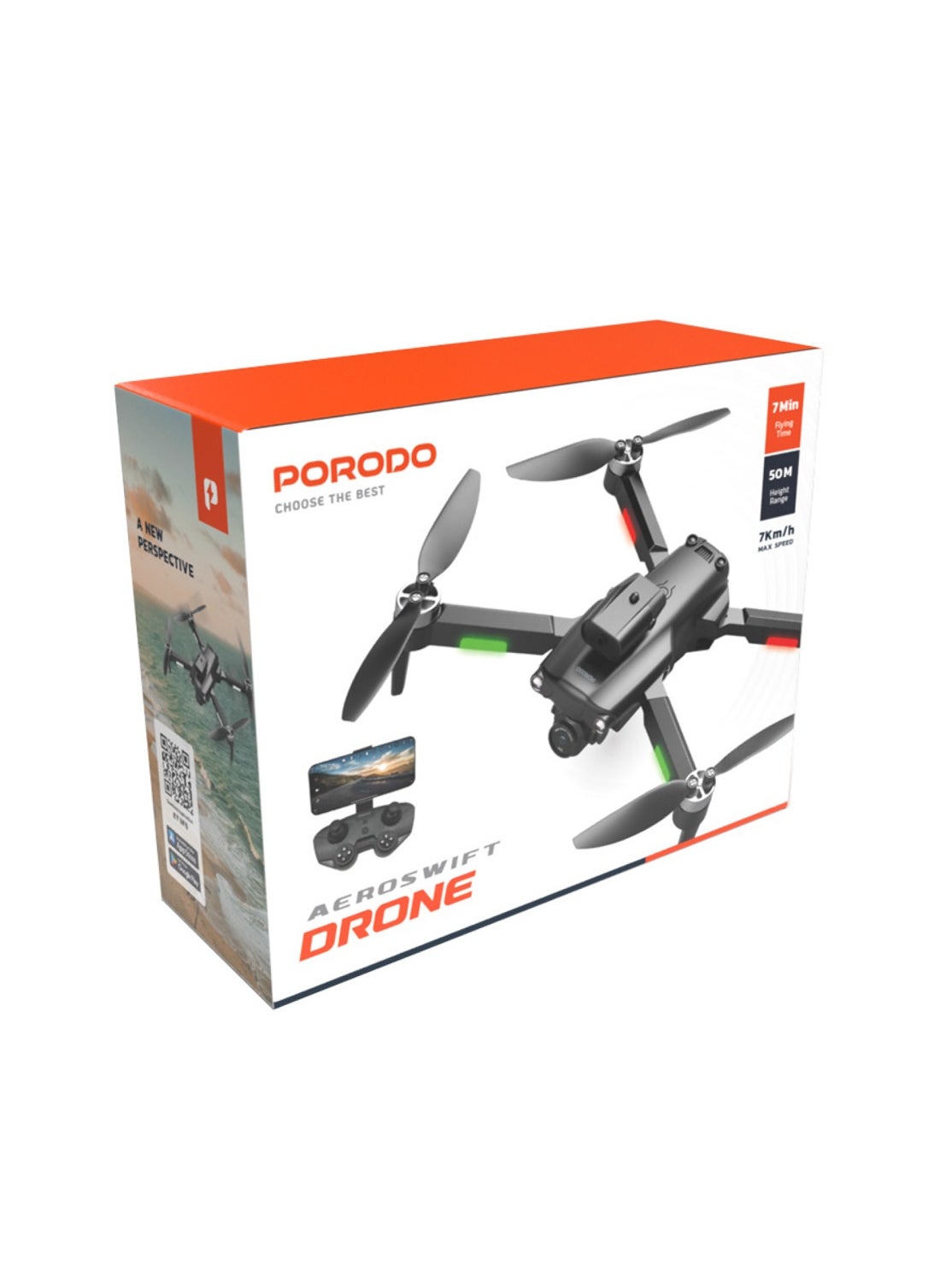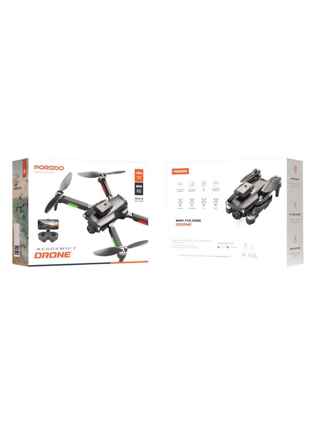 Virtual flying for those who like to be a pilot or experience themselves now becomes valid with the Porodo Aeroswift Drone. The Porodo Aeroswift Drone in black color at a maximum speed of 7 km/h with your controller as a pilot at a height range of 50 meters and lasting for 7 minutes would be enjoyable. For more efficiency, the drone is equipped with a brushless motor. Excellent maneuverability would be possible with the 360-degree flips. Also, it is equipped with fast charging technology. The control uses movements (forward, backward, left, and right) in six-axis gyro stabilizers.