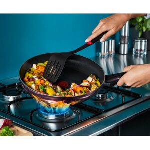 The Tefal RESIST INTENSE frypan was built to last, offering extreme resistance and durability in any cooking conditions. This premium-quality frying pan was designed to endure the high flames of gas stoves with impressive resistance to scratches and stains, with Flame Protect technology to ensure long-lasting performance. Flawless searing and fat-free cooking with no added oil are within reach thanks to the high-quality non-stick surface, for healthy results with uncompromising flavor. The TITANIUM non-stick coating delivers exceptional flavor and consistency, with effortless clean-up for maximum convenience, while Thermo-Signal technology helps achieve perfect cooking results and searing like a pro. With extra-robust engineering combined with enhanced ergonomics, discover the ultimate high-resistance frying pan.