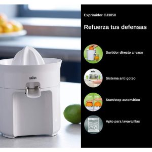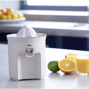 - Easy handling by simply pressing down the fruit to start and lifting it off to stop