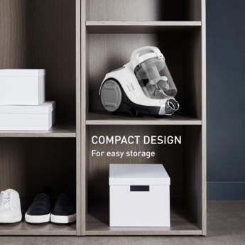 | Functions | Cyclonic suction, 3-stage filtration, suction control, multi-surface cleaning, compact storage |
