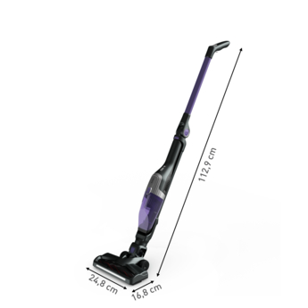 The Tefal TY1238 XTREM Compact Cordless Vacuum Cleaner is designed for effortless and versatile cleaning in any home. Featuring innovative Bi-Directional Flex Technology, it easily reaches under low furniture and tight spaces without the need to bend over, making cleaning more comfortable and efficient. This 2-in-1 vacuum quickly converts from a handstick to a handheld cleaner, allowing you to tackle floors, upholstery, and hard-to-reach areas with ease. Powered by a 145W motor, it delivers strong suction for effective dirt and dust removal. The vacuum’s 0.4-liter bagless dust container is easy to empty and clean, while the washable filter helps maintain optimal performance and hygiene. With up to 40 minutes of runtime on a single charge, the TY1238 ensures extended cleaning sessions without interruption. Lightweight and compact, it’s perfect for quick clean-ups and regular maintenance around the home.
