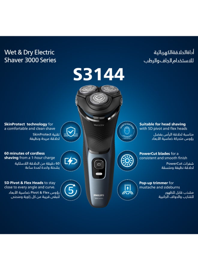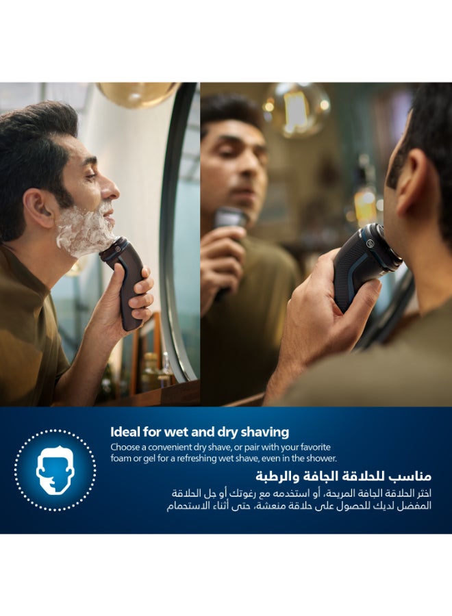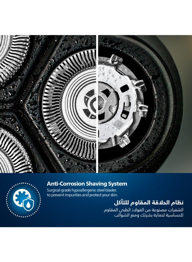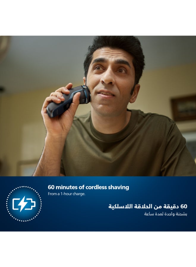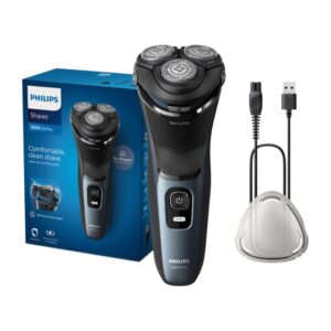 Philips Shaver 3000 Series Wet & Dry Electric Shaver gives you a comfortable, clean shave, even on sensitive skin. 5D Pivot & Flex Heads, 27 self-sharpening PowerCut Blades, and wet and dry use ensure excellent, reliable results every time.