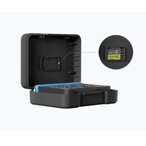 - Your accessories, safe. Comes with a battery box and built-in memory card storage slot for peace of mind.