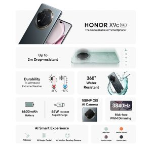 Designed for those who demand durability, performance, and style, the HONOR X9c redefines what it means to be resilient. Built with HONOR’s Ultra Bounce Anti-Drop technology 2.0, this phone is SGS-certified to withstand drops of up to 2 meters. Whether it’s a drop, splash, or high heat, the HONOR X9c stands strong, making it the ideal choice for rugged environments and adventurous spirits.