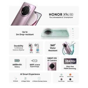 Designed for those who demand durability, performance, and style, the HONOR X9c redefines what it means to be resilient. Built with HONOR’s Ultra Bounce Anti-Drop technology 2.0, this phone is SGS-certified to withstand drops of up to 2 meters. Whether it’s a drop, splash, or high heat, the HONOR X9c stands strong, making it the ideal choice for rugged environments and adventurous spirits.